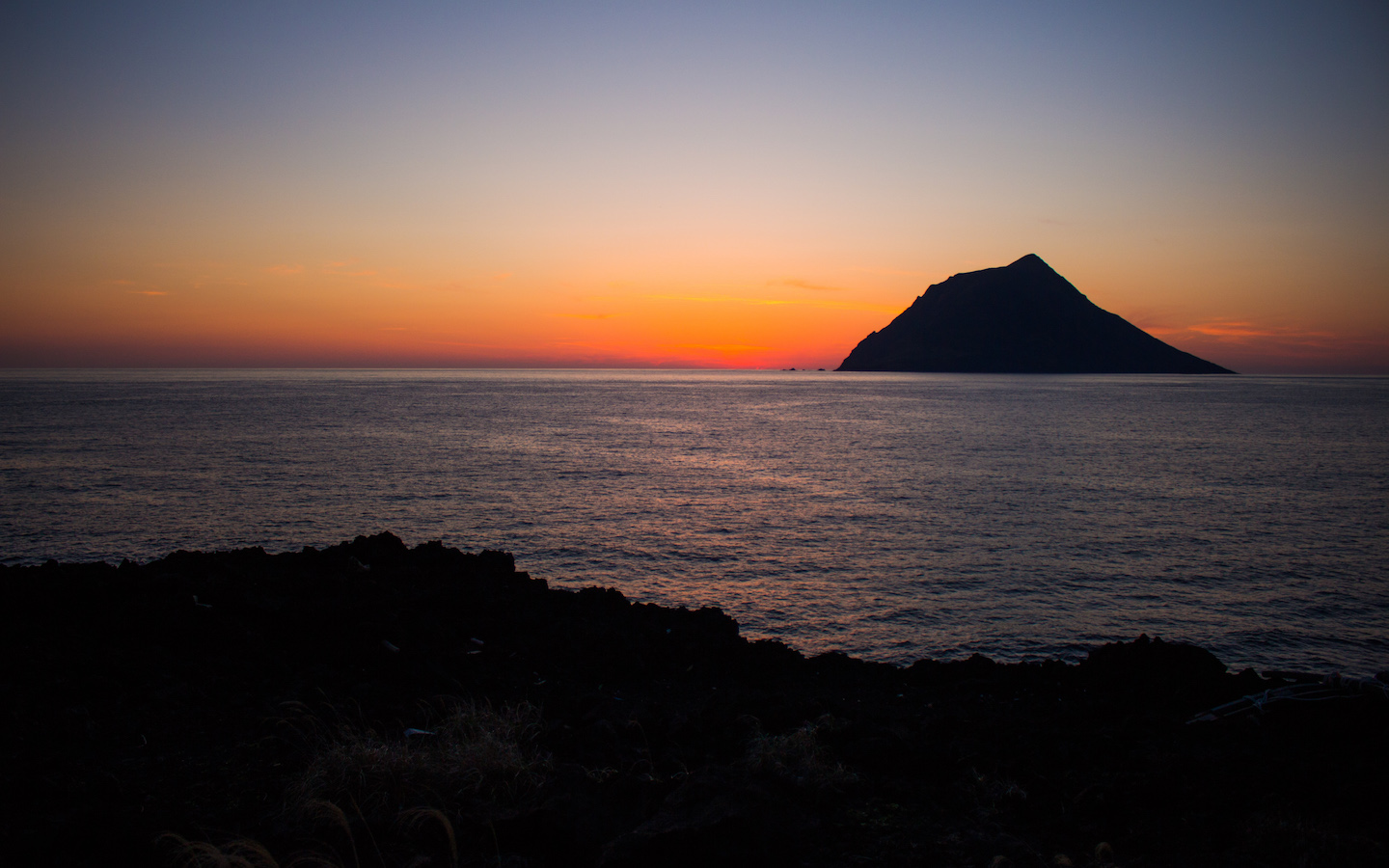 小さな朱赤色の花が、八丈島の梅雨時の中で一際映え、灰色の世界に彩りを加えている。