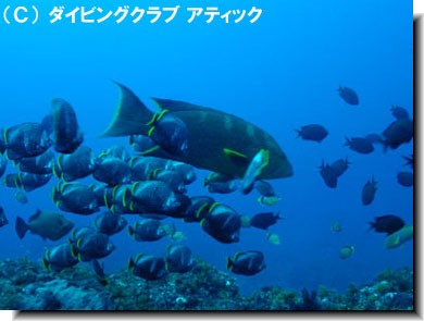 水温も25℃台、透視度も30メートルと蒼い海が続いています。