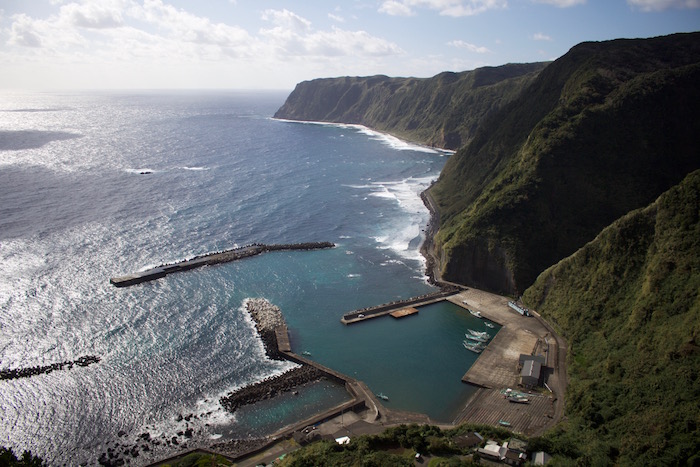 下には洞輪沢港(ぼらわざわこう)が望め、八丈島の絶景ポイントの一つです。