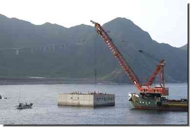 漁港の一番外側にある防波堤を伸ばすためのケーソンがやってきました。