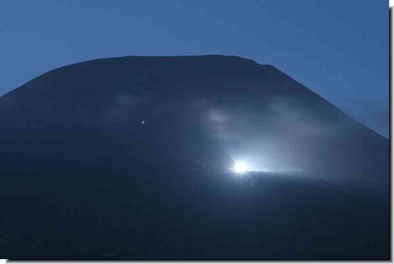 日が沈んでからしばらくすると八丈富士のふれあい牧場付近に謎の光がっ!
