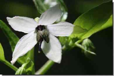 あの激辛からは考えられない、小さな白い可憐な花を咲かせている。