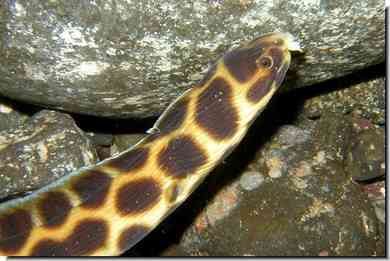 三角根の沖側の岩の隙間に隠れるようにしているキビレマツカサ。