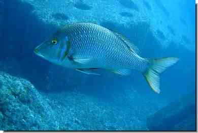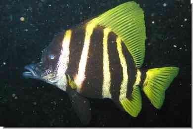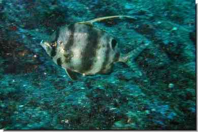しかも食べ方が大胆にも棘がついている丸のままの状態でバリバリ食べる。でも、ときたま唇に棘が刺さり、食後に楊枝くわえているようなハマフエフキもいるのだ。