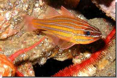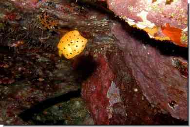 普段は珊瑚の上にちょこんと乗っているが、ある程度の距離内に入ると、素早く珊瑚の下に隠れてしまう、用心深い「メガネゴンベ」