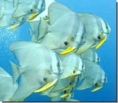 投稿日: 2005年10月8日ツバメウオ 和名:燕魚(つばめうお) 学名:Platax teira 科:スダレダイ科 体長:40cm 撮影地:イデサリ/水深 7m 単体で見ても嬉しいが、ちょっと群れているとかなり嬉しいツバメウオ。 幼魚から群れた成魚までいるので、八丈島で繁殖しているのだろう。