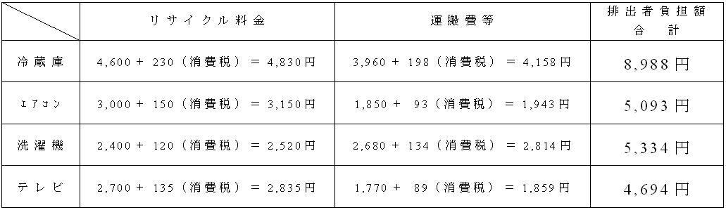 *リサイクル料金は、製造業者が定め公表したものです。